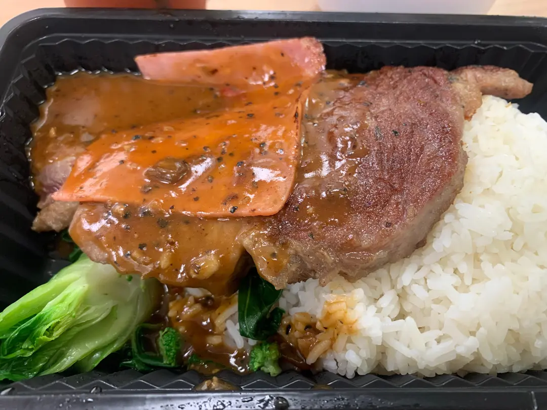黑椒牛扒火腿飯 (配羅宋湯 凍檸茶)