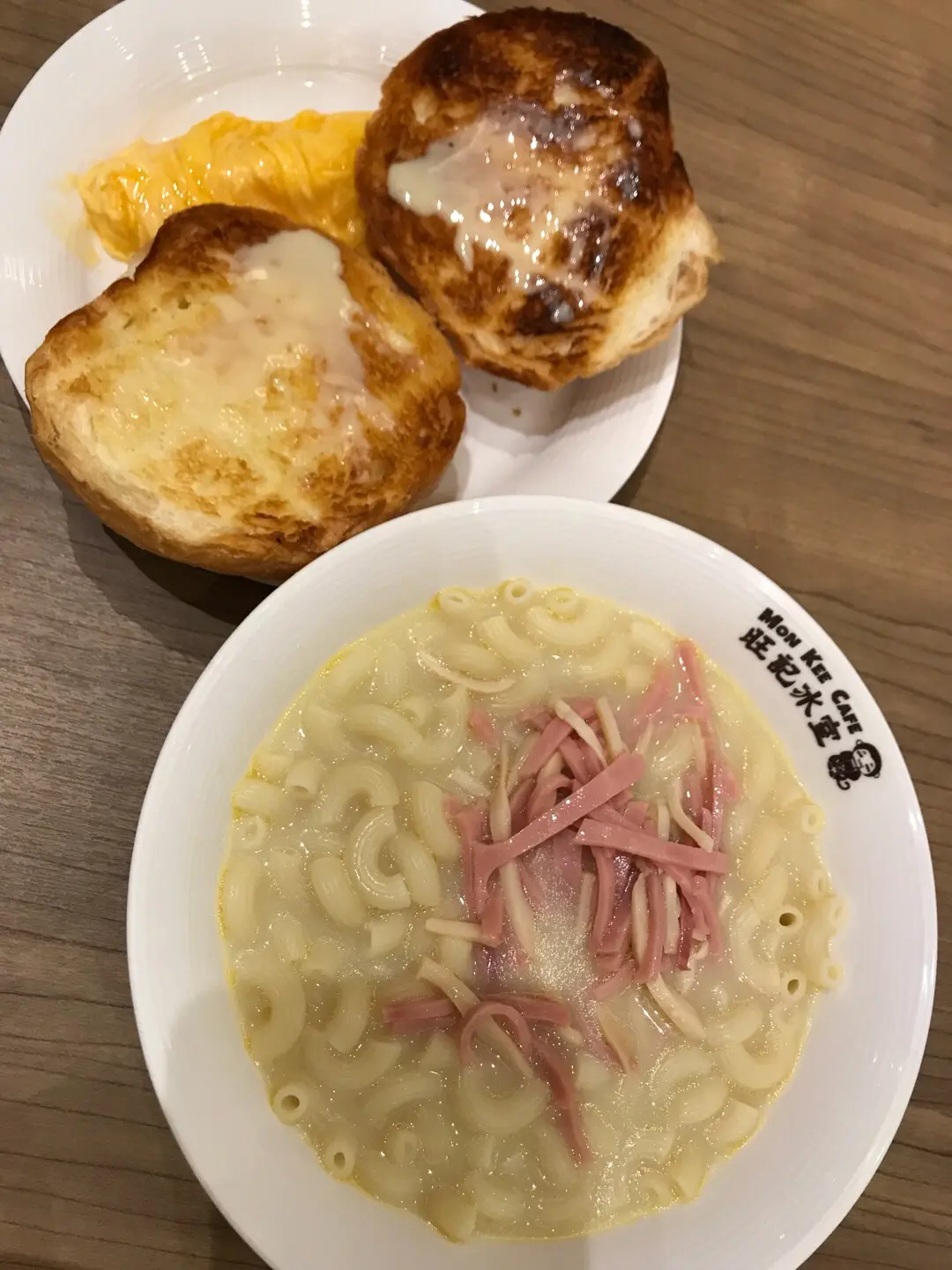 鮮忌廉雞湯鮑魚火腿絲通粉,配埋4.3牛奶炒日本滑蛋