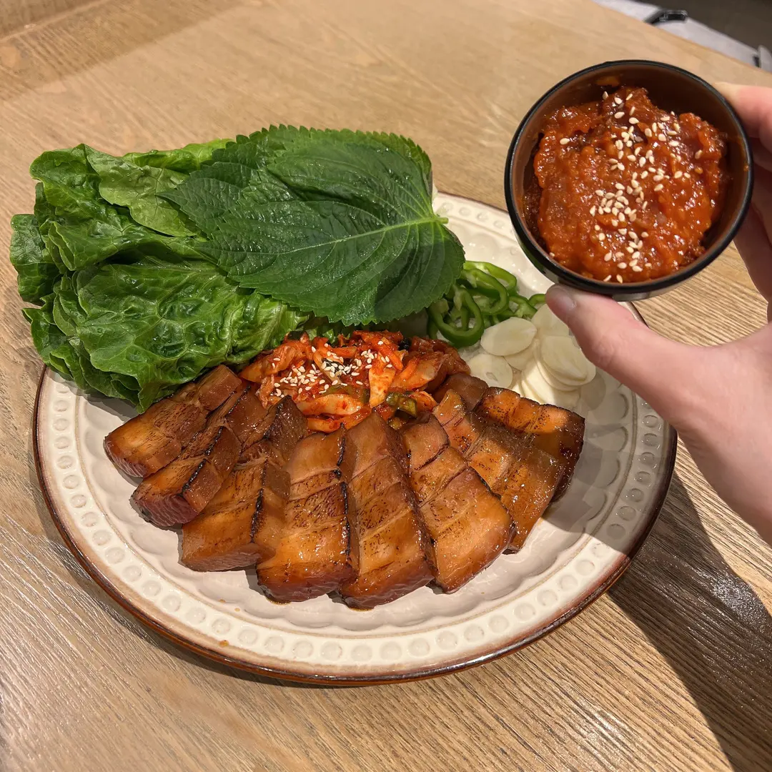 燒醬油黑毛豬白切肉配大醬生菜