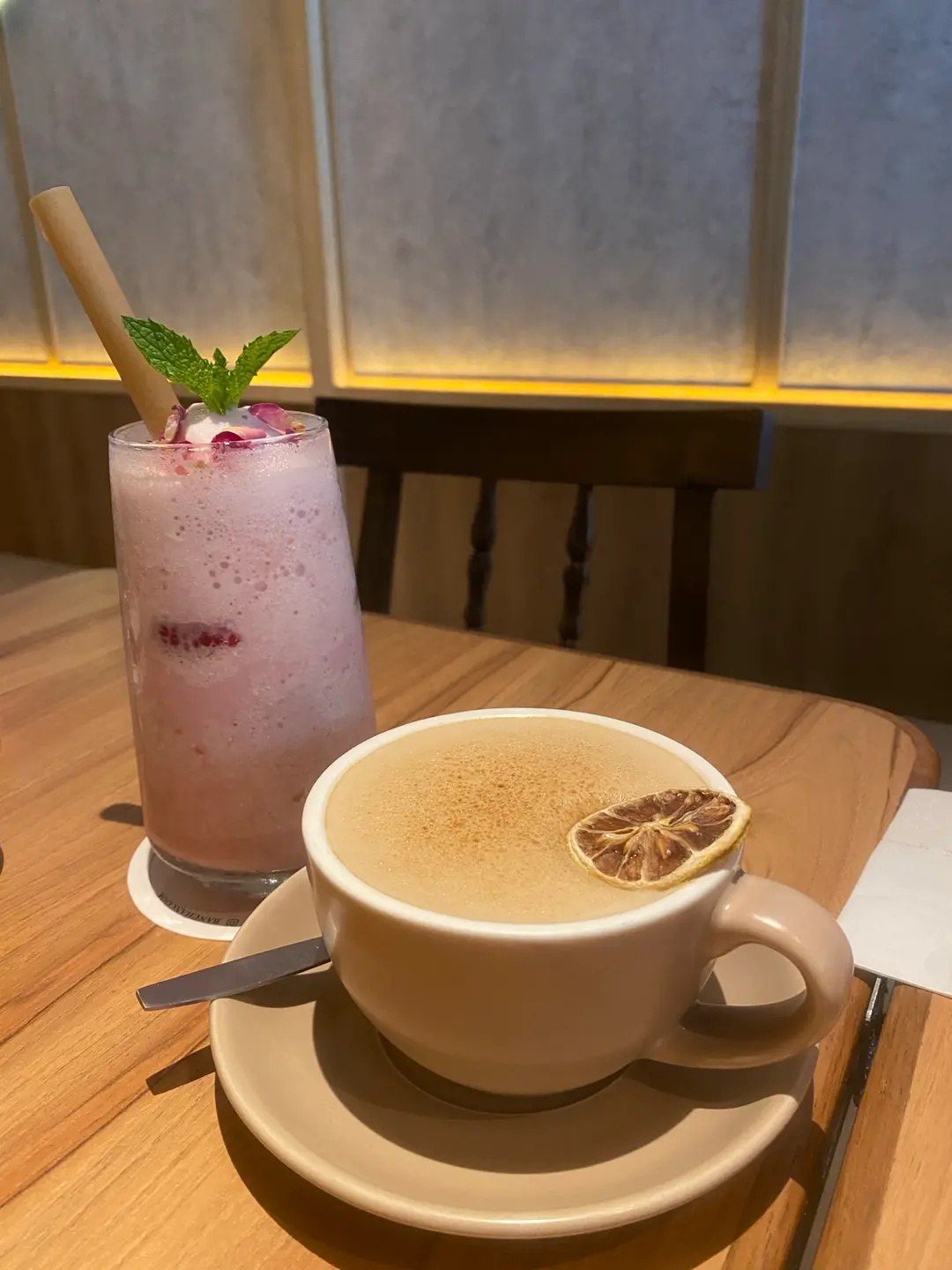 伯爵茶鮮奶咖啡(熱)、玫瑰紅桑子沙冰