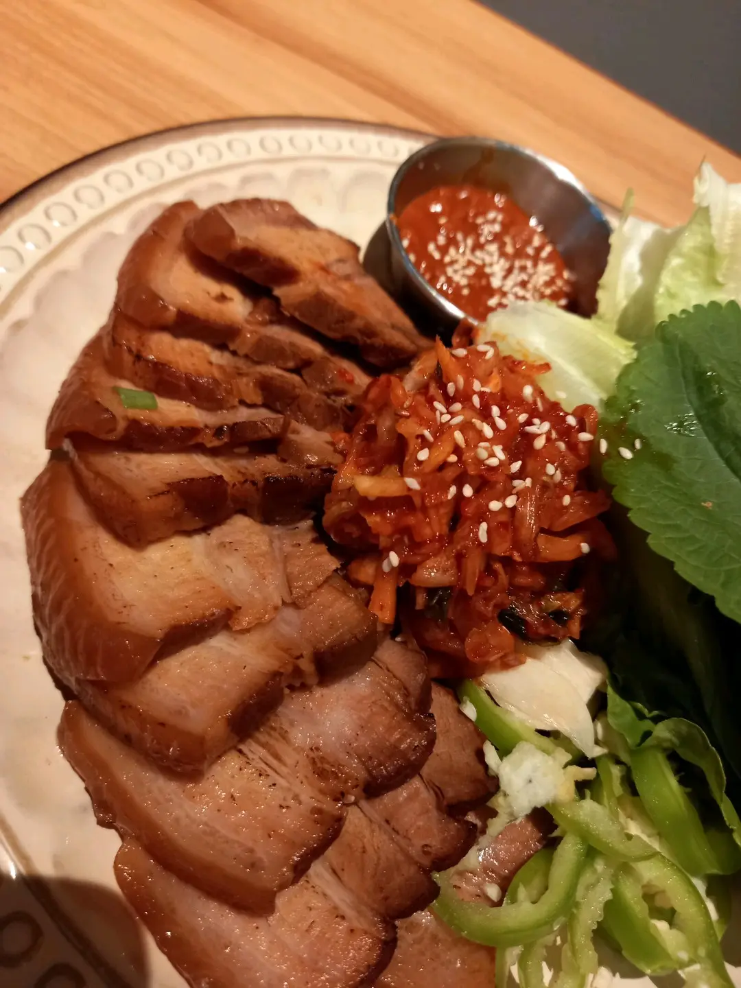 燒醬油黑毛豬白切肉配大醬生菜