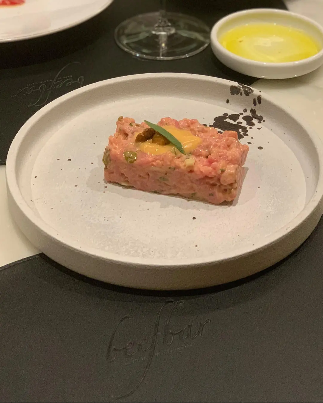 Milk-fed veal filet tartare with tarragon & praline