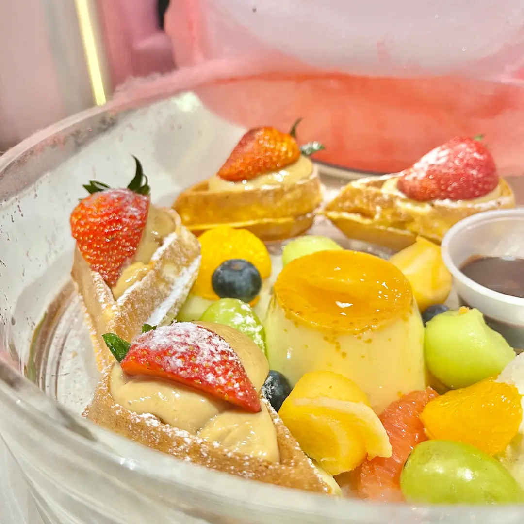 伯爵茶焦糖布丁窩夫配雪糕及棉花糖