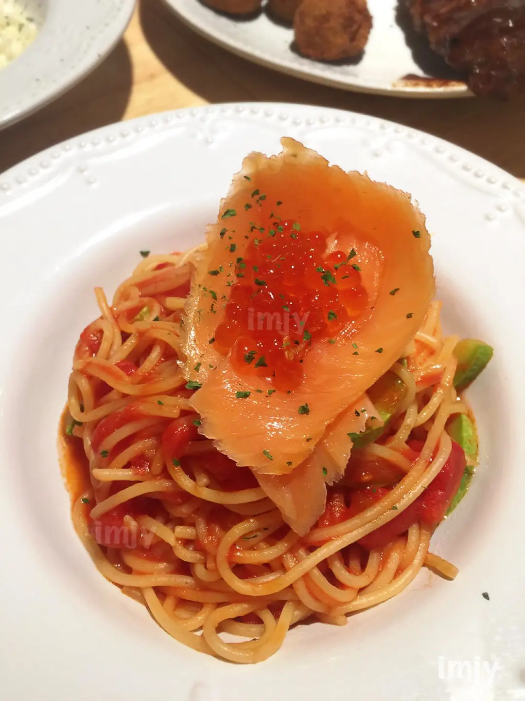 煙三文魚配醬油漬三文魚籽鮮茹意粉