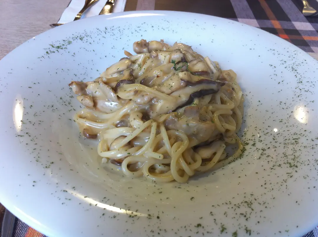 Chicken and Mushroom spaghetti in creamy sauce
