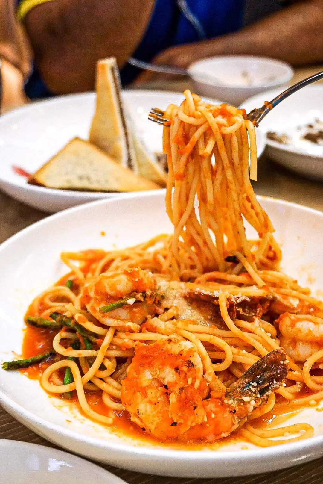 香煎虎蝦配蘆筍辣蕃茄汁意粉