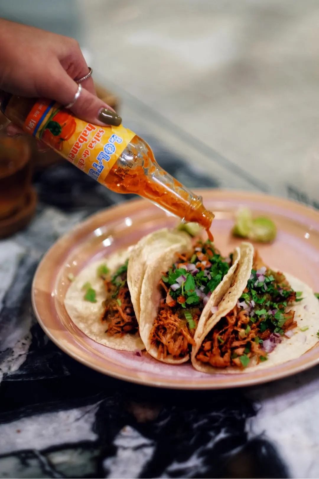 墨西哥夾餅配慢煮豬肉及莎莎醬
