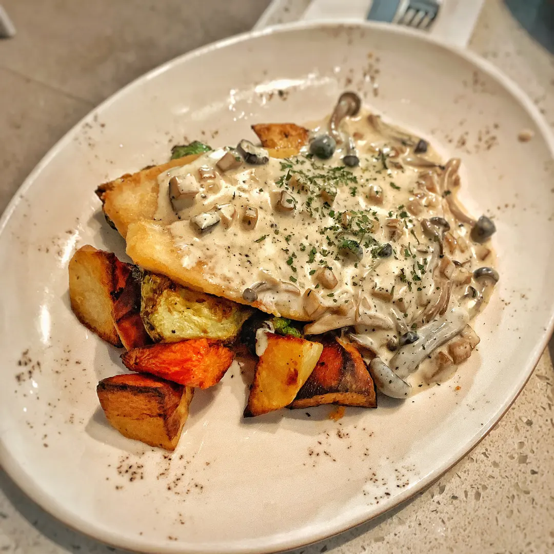 Pan Fried Fish Fillet with Black Truffle Mushroom Sauce