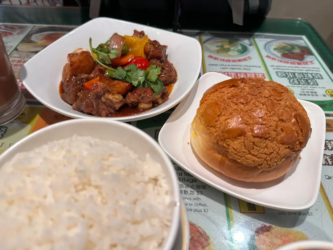 中式牛柳飯 + 菠蘿包