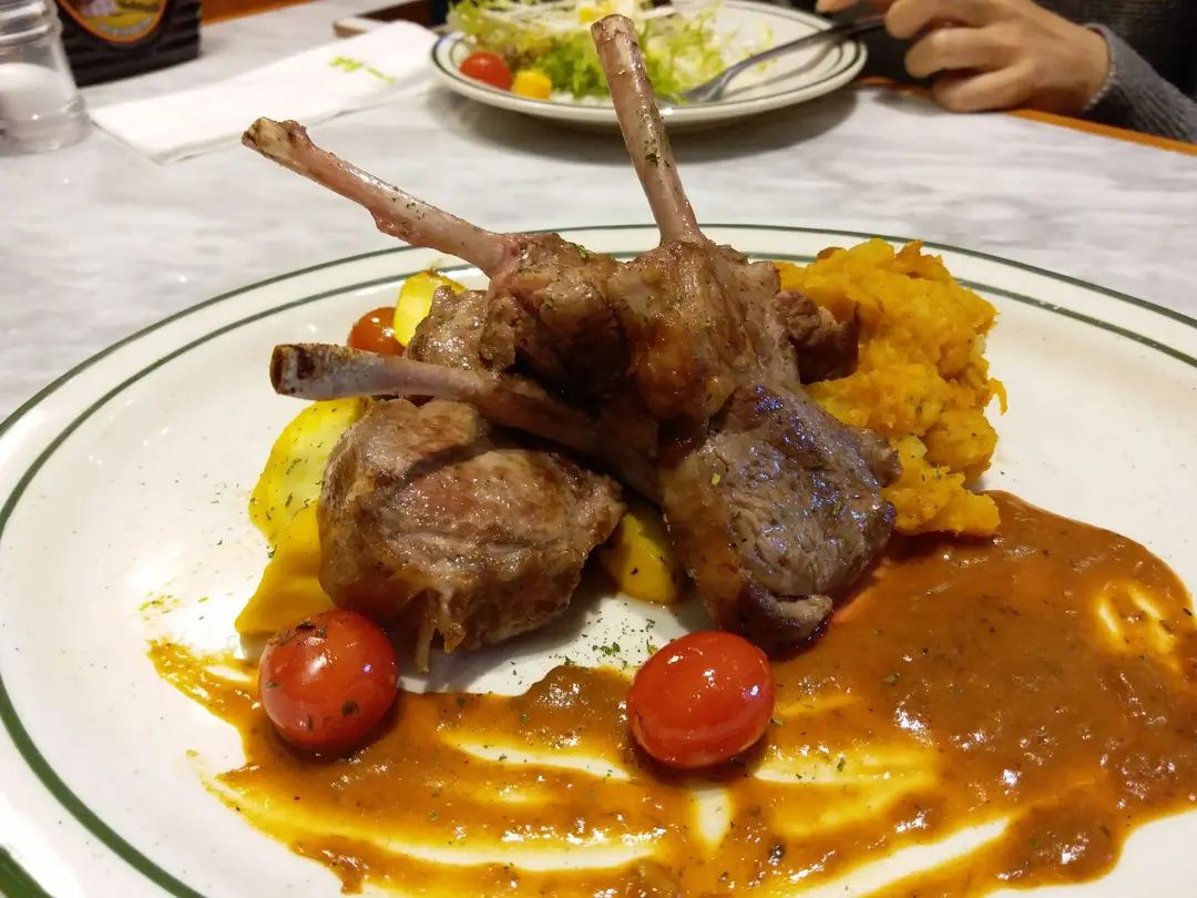 烤羊架伴南瓜蓉及酸菜