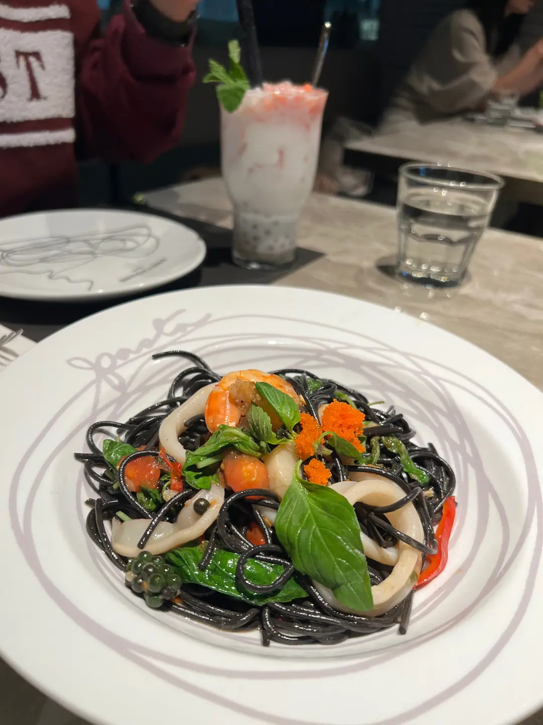 鮮蝦帶子墨魚汁麵