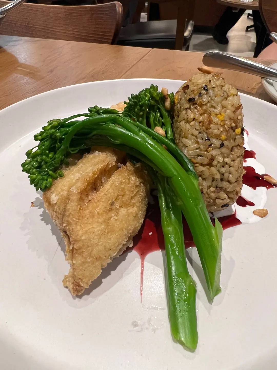 脆炸松子盲曹魚柳 .烤飯團 •洛神花忌廉汁