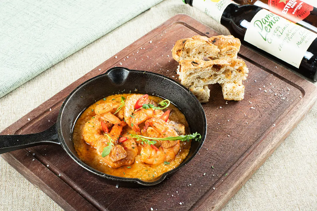 傳統西班牙蒜片蝦伴香草番茄麪包