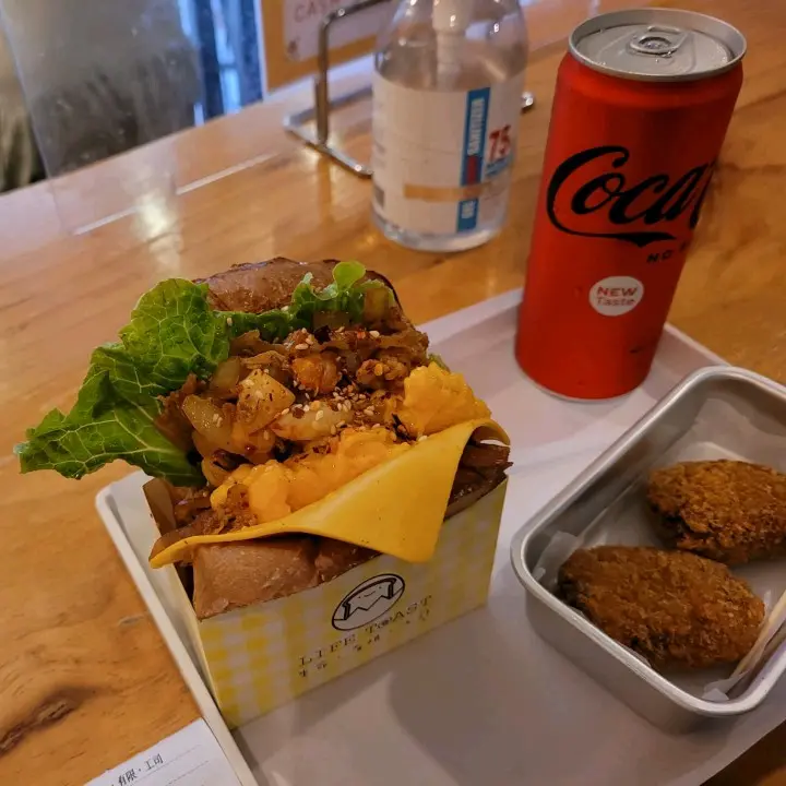 泡菜豚五花芝士滑蛋吐司+set A