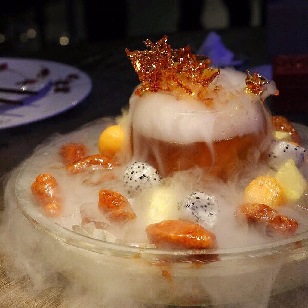 Deep-fried Kurobuta Pork with Iced Fruit & Coral Shape Sugar 冰焰鮮果黑豚肉