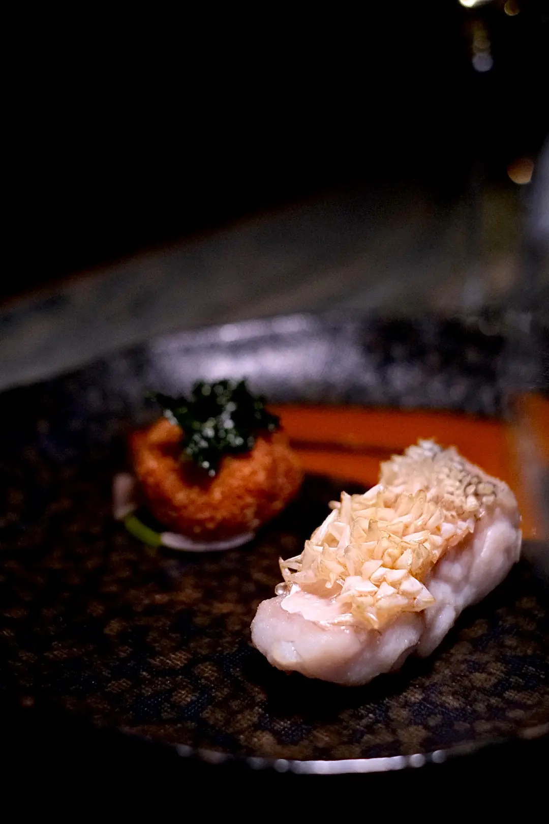 甘鯛立鱗燒/炸脆豬肉蝦肉球配炸羽衣甘藍/泰國稠紅咖喱醬