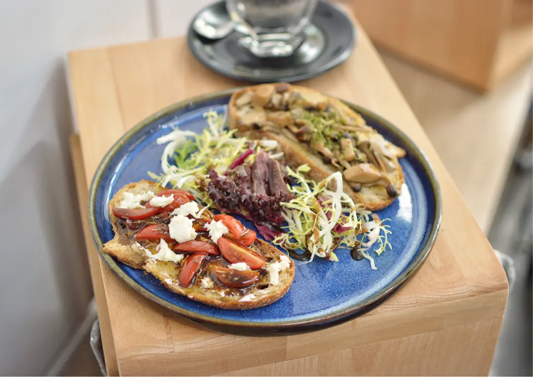 烤酸種麵包(油封車厘茄配水牛芝士+牛油炒雜菌)