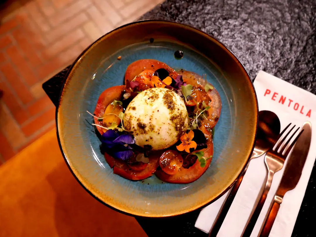 意大利牛心茄布袋芝士沙律配百香果油醋汁