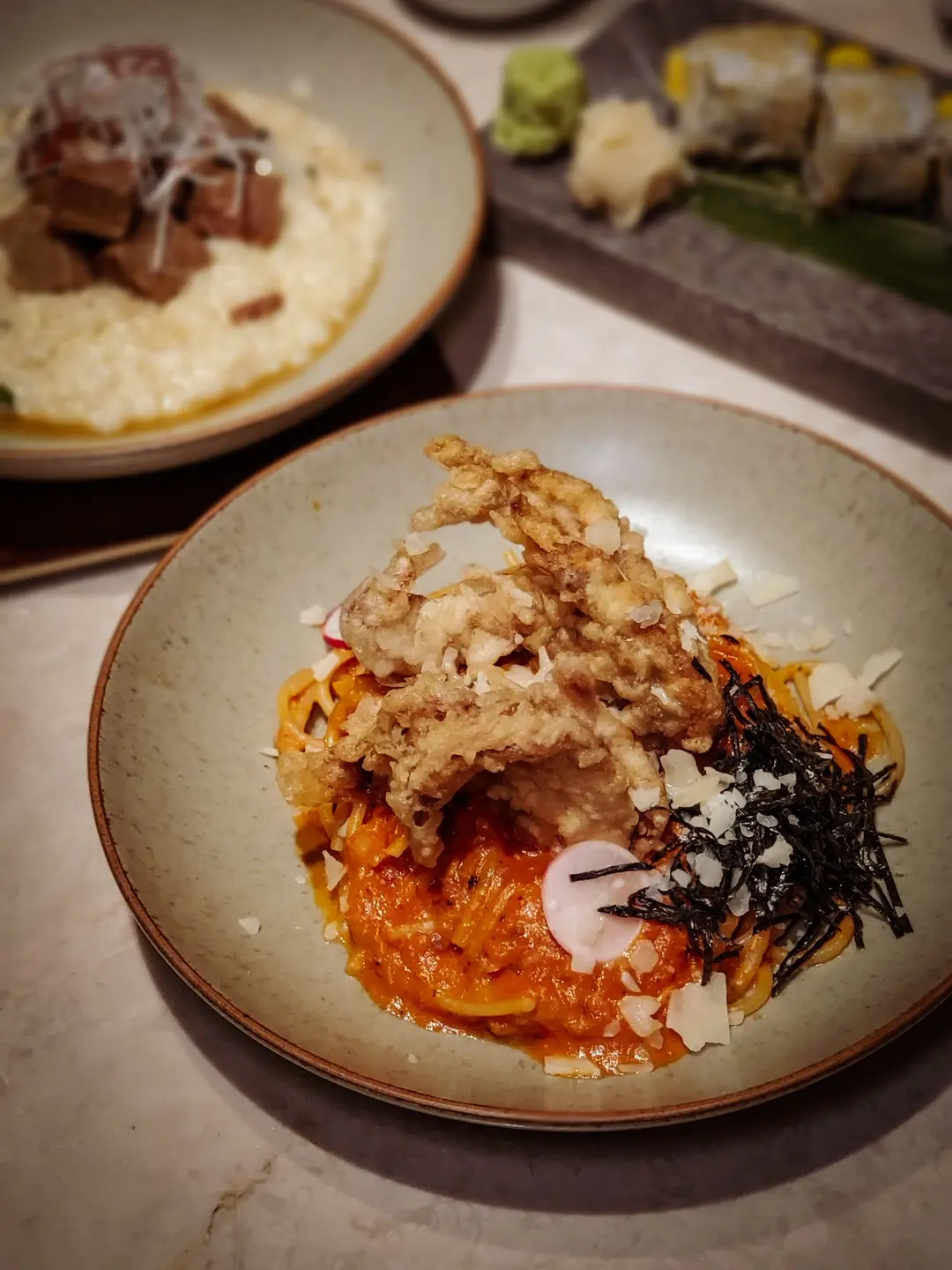 Soft Shell Crab Spaghetti · Crab Meat Tomato Cream Sauce