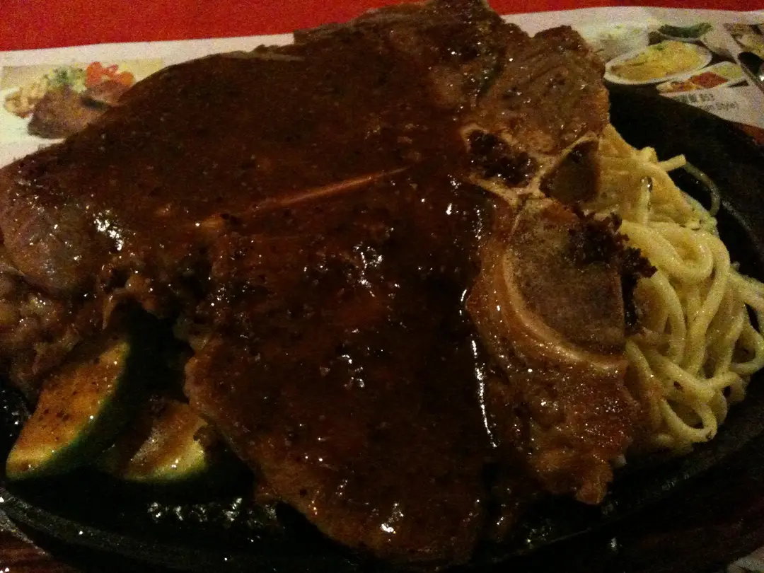 T 骨扒配黑椒汁跟意粉