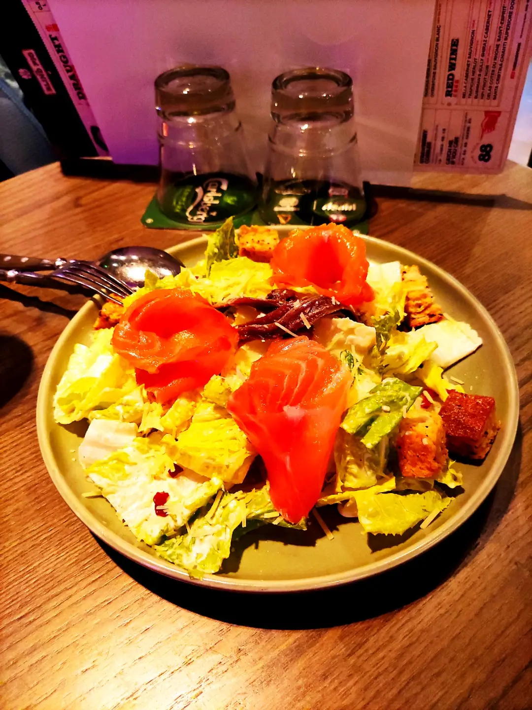 Caesar Salad (add Smoked Salmon) 凱撒沙律、小鰻魚、麵包粒
