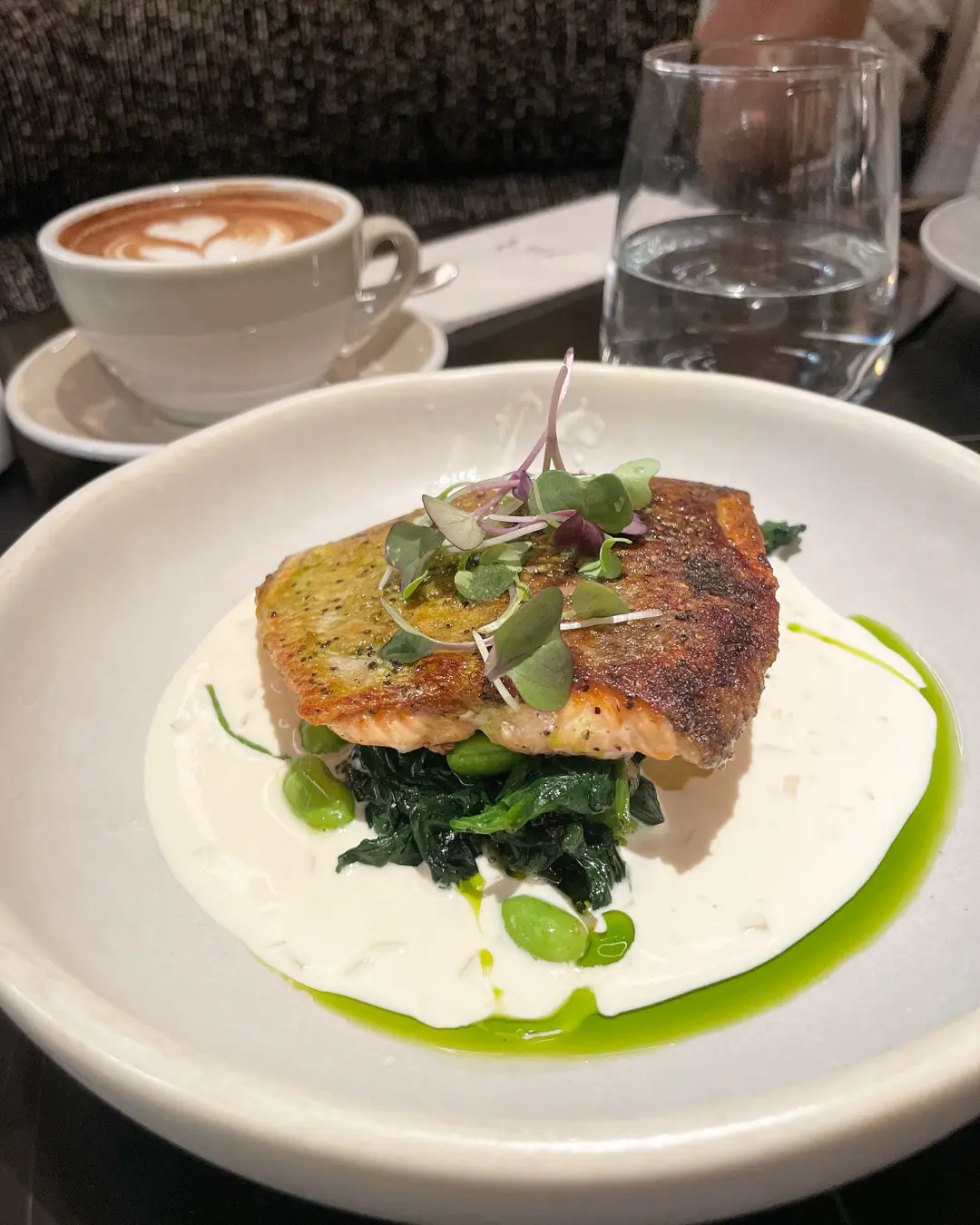 三文魚配菠菜苗枝豆加檸檬牛油