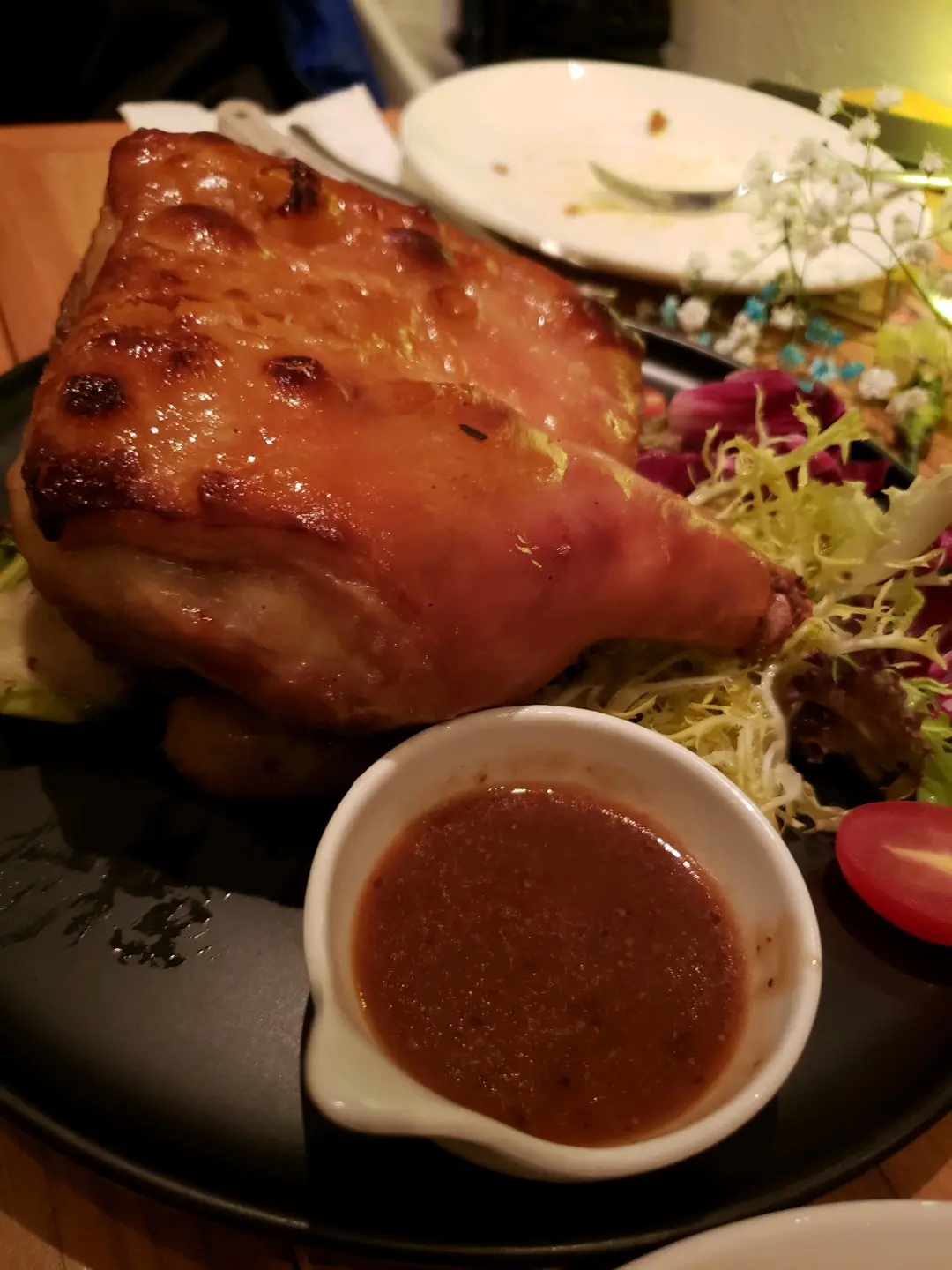 12小時低溫慢煮烤乳豬件伴椰菜仔及手指薯配芥末籽蘋果燒汁