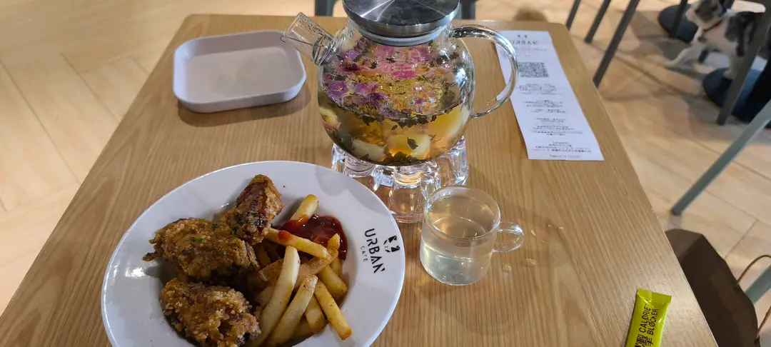 鹽酥雞翼薯條,鳳梨綠茶