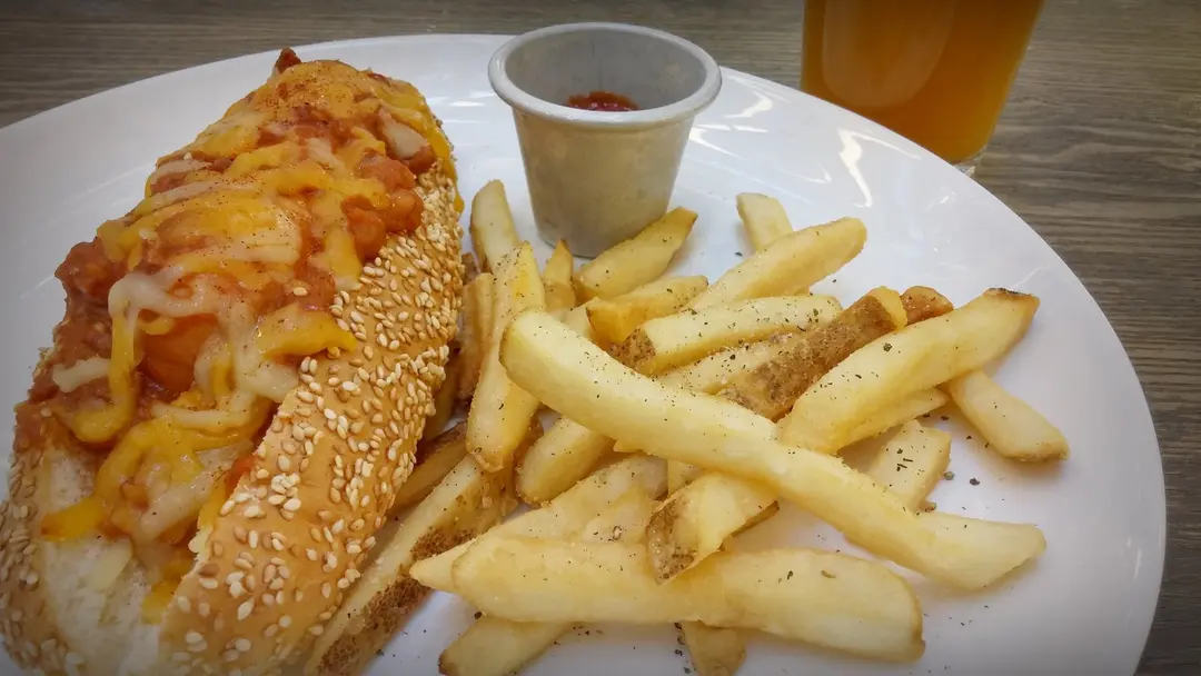 香辣熱狗。薯條