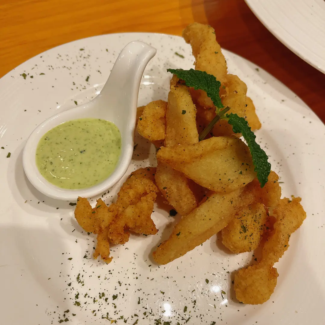酥炸比目魚配芫荽橙醬