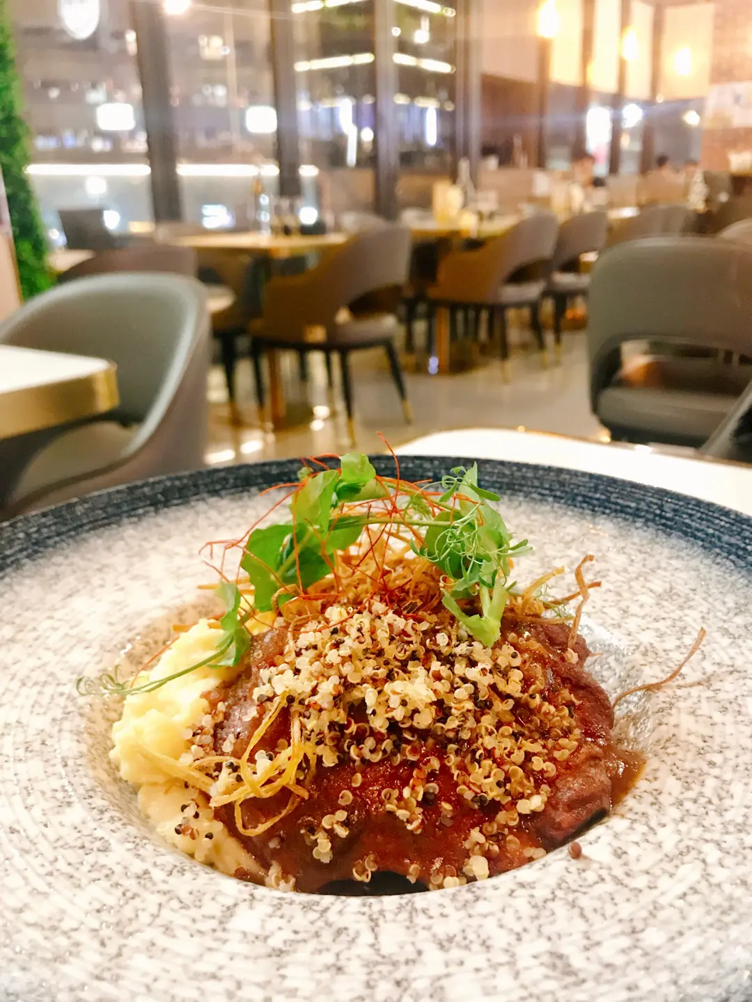 慢煮和牛牛面肉伴薯蓉·炸大蒜絲·豆苗沙律