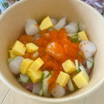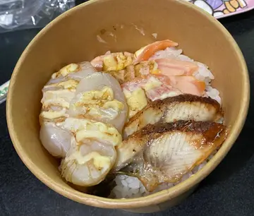 「一漁」算係T town 街市食街中我最喜歡嘅店鋪之一,主打平民壽司及刺身。刺身丼包紙包飲品或麵豉湯,亦都可以加$3轉汽水。今日叫左個雜錦刺身丼,即叫即整,刺身有三文魚、帶子同吞拿魚,刺身份量都幾多,每款都好新鮮,面頭鋪左好多蟹籽,加埋玉子粒同青瓜粒,色彩繽紛,賣相好吸引,以$56連飲品黎講算幾超值。 吞拿魚刺身:丼飯加配四片刺身只係$20,全部都係厚切,大大塊好肥美,帶有魚油甘香味,入口鮮甜。帆立貝刺身:帆立貝刺身一份有4件,大大件,非常厚身,無雪味之餘入口仲好鮮甜,以$56黎講算幾抵食。炸蟹餅:即叫即炸,拎到返屋企時仲係熱辣辣,炸起好好食,非常香口。…查看更多