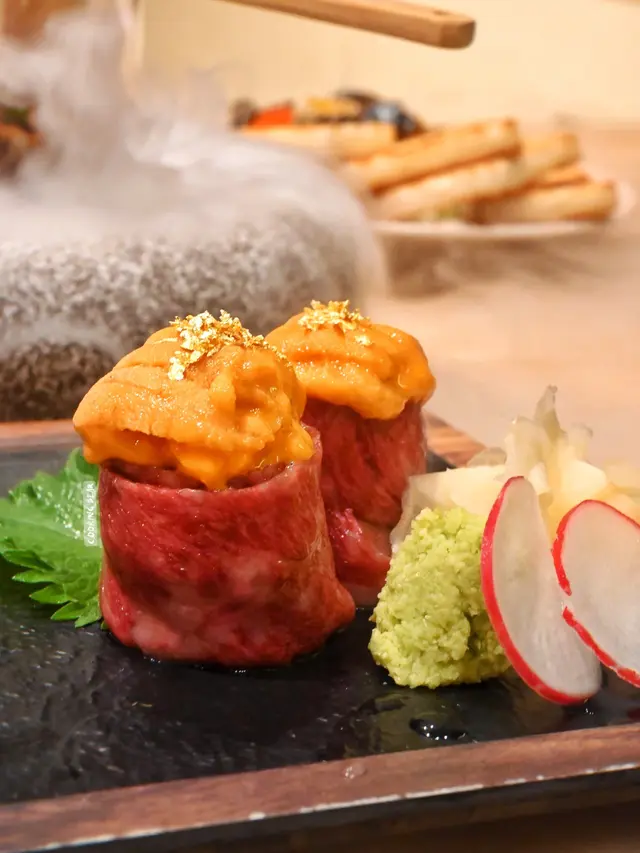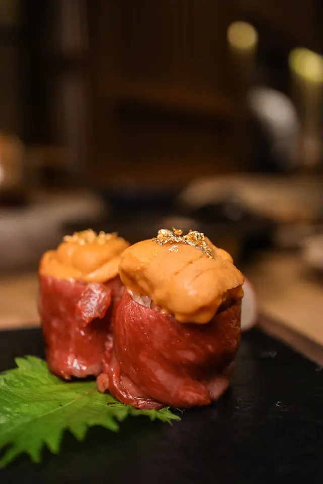日本海膽配火炙A4宮崎和牛壽司