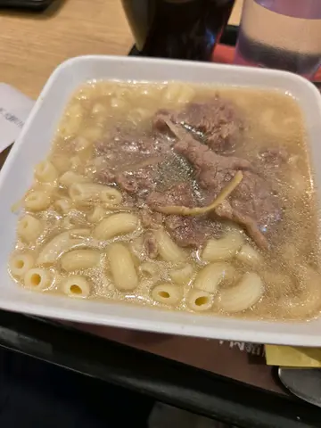 今天早上要去牛頭角開會,由於星期六關係,怕那邊的餐廳都不會營業,於是便係油塘食完早餐先過去。見到佢到都幾多款式嘅套餐,有粥,有炒麵,有扒餐,蛋牛三文治等等,而我就選擇了生滾薑絲牛肉通粉配炒蛋火腿多士再加上熱齋啡。落完單後就到取餐區等待,等左大約7至8分鐘就有了,首先食多士,有跟牛油都幾細心的,之後便炒蛋,感覺不太滑及賣相不太好,之後就到生滾薑絲牛肉通粉,感覺不像生滾煮出來的,湯沒有薑味道,而且生滾起來湯是會有些像打邊爐樣的泡泡,不過早餐還是算吧,咖啡一般。…查看更多