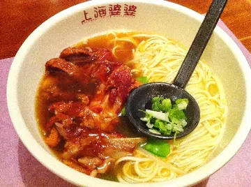 除了日本菜,上海菜也是我喜愛的菜式之一。今次我們就去咗上海婆婆,可能因為已經有很多食肆,從前長長的人龍不見了。我們雖然也要等位,不過不用五分鐘就可以入內。店內可以看到師傅們即製包點麵食的情況,而牆上掛滿了以中國味濃的人像現代畫!店員奉上午市套餐餐牌,主要有小菜飯餐和一麵一點的套餐。我們三人也叫了一麵一點的套餐,每人有一個麵食和點心,點心大家可以一起分享食。我叫的是豬軟骨麵和小籠包,豬軟骨大大件,醬汁濃而不膩,肥美肉腍的豬軟骨最合我心意。上海麵粗幼適中,食起來爽而不黏身,因為平時最怕煮得過腍的粉麵。小食先講小籠包,真係皮薄餡靚,一咬下去就已經 ‘爆湯’ 了,而且上湯清甜,值得一試。最令人驚喜的是牛肉包,外脆內軟,金黃色的表面,份外吸引,肉汁豐富的牛肉碎餡料,十分惹味。最後就是紅油抄手,紅油抄手對於我而言,只是雲吞加辣油,沒有什麼特別。雲吞皮很嫩滑,豬肉餡內有冬菇等材料,慶幸的是紅油不辣,怕辣的你一試無妨。食完一大碗麵,加一個小籠包,兩件紅油抄手,再加兩件牛肉包,真是非常滿足的一餐呢!…查看更多