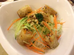 聽日放假, 爽YY, 我都知爽, 但係女友一時間問我, 你食過真正既越南野未, 講真我連越南都未去過, 我點知真正既越南野咩味姐, 真係考起我跟住今次佢話, 不如我帶你去食下真正既越南野, 我心諗唔會係越棧掛, 又會唔會好貴架點知佢帶左我去元朗巴士總站, 我心諗唔係掛, 大排檔就有...點知站頭有間叫啊梅湯河入去我以為會好貴, 但竟然係茶記既價錢我叫左個香茅豬扒飯加個小食海鮮卷首先係小食黎先海鮮卷睇落個賣相唔錯食落外脆香口, 內面好多唔同配料最估唔到係真係有蟹肉!!冇幾耐個香茅豬扒飯都黎啦個樣幾正WO豬扒外酥內軟幾多汁, 唔會"乾曾曾"好味配埋個蔥油飯真係好鬼好味因為我個人鐘意多蔥油, 我就叫老闆佢地幫手再比D我佢地真係好好人, 比多2匙我, 仲問我夠唔夠,哈哈飯內仲會配有一舊蔗蝦蝦味幾濃, 最緊要係重香茅味, 真係正宗越南野彈牙好好味最後加杯多奶茶, 滿足!!…查看更多
