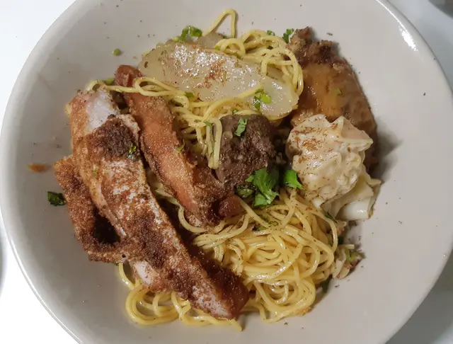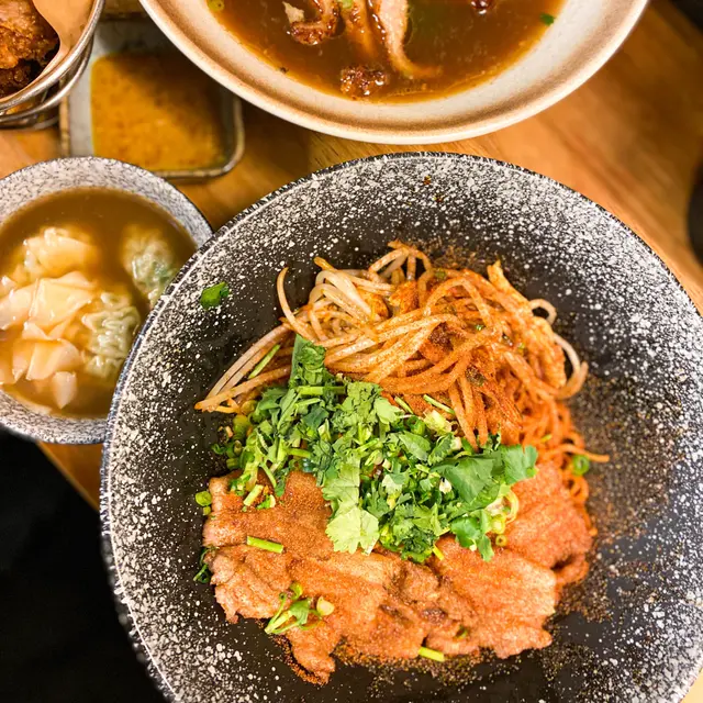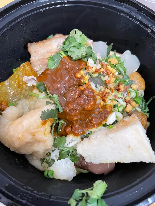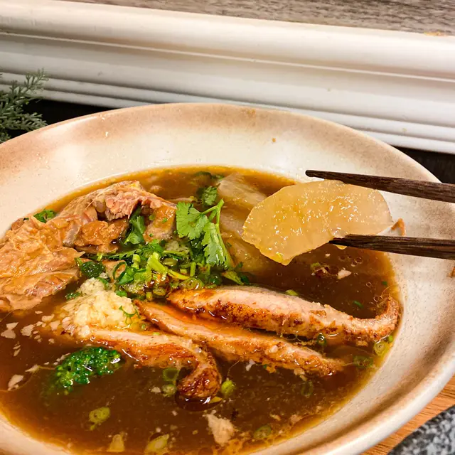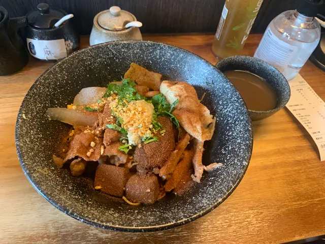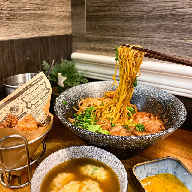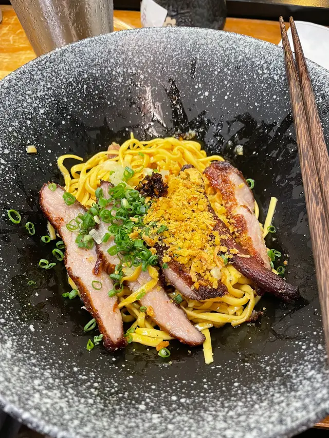 無意中見到有人介紹佢啲餸 望落好吸引!門面不大 座位只有6個 大部份都係選擇外賣~ 晚上6點多到 咁岩有位坐!見到丼飯又好吸引 最後揀左車仔麵 可以試食下唔同餸!【蒜油蝦子撈麵】$15本身覺得車仔麵係要有湯~ 但見到撈麵真係好吸引! 蝦味好出 蒜油亦都勁香!【燒牛舌芯】$15見到個個都必點牛舌~ 份量都有好多塊 本來已經好夠味 再燒一燒就更加香口! 又淋又有咬口!【糖心蘿蔔】$11車仔麵就必定要有蘿蔔! 4舊蘿蔔全部都無渣仲要好好好甜 又夠晒淋!【日式叉燒】$15半肥瘦 一啖咁食岩岩好~ 不過呢個我覺得無乜特別 可以試下其他配料!【黑松露撈麵】$15勁多黑松露係上面 撈埋仍然都好香口!【鹵水雞翼皇】$15色澤合格 味道亦都滿分! 好入味又唔會令到啲肉質變‘鞋’~…查看更多