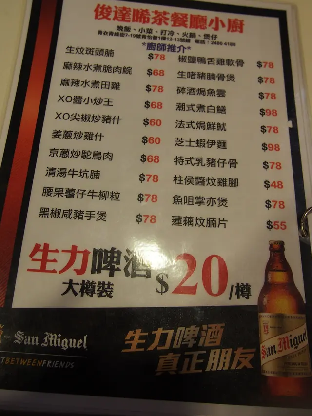 俊達茶餐廳小廚 (青衣) 網址: https://s.openrice.com/QrbS0kqi000 地址: 香港青衣青綠街7-19 號青怡薈1樓12號舖 電話: +852 2434 3256