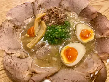 晚上去深水埗攞野,正愁唔知食咩好,眾所周知深水埗真係好多好野食,有平民嘅、有米之蓮嘅,真係好苦惱😖剛巧經過間外表平平冇奇嘅拉麵鋪,又剛剛聽到裡面有人講日文,好奇望下原來有位師傅講緊日文,立即吸引左入去試試😆😆店內裝修簡單,約有4-5張枱,有少少日本裝飾🎏一開始唔識填佢張點餐紙,女侍應內心講解!讚👍🏻叫左兩碗麵,B餐 ’肉愛食者餐‘$120 個名有d怪怪😂,上枱時個震撼真係嘩然😲,食物與照片係相符,放左好多叉燒,感覺好似係用叉燒包住個碗咁🍜,另有叉燒粒及流心蛋🥚,湯底就用豬骨濃湯好滑好燉湯feel好好飲,叉燒就吸收左湯汁更帶出到個叉燒味