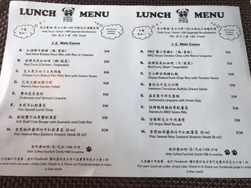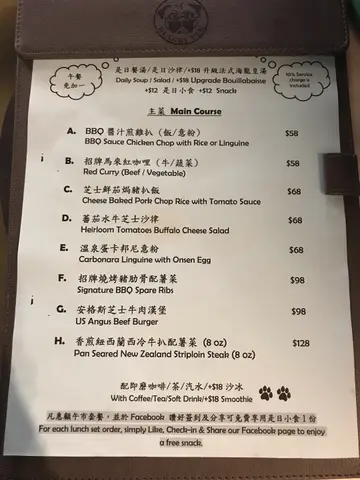 主題餐廳愈開愈多,但以八哥為主題就真係史無前例🐶店鋪好多擺設同餐具,甚至甜品都係有佢既蹤影。夜晚9點幾先用餐所以都好多位置,就選擇咗窗邊位置望到馬路!點左枝Fox Brook Cabernet Sauvignon 2014,USA 紅酒,主菜就卡邦尼意粉配溫泉蛋及澳洲和牛漢堡,甜品就八哥朱古力慕絲配美國芝士蛋糕!卡邦尼意粉配溫泉蛋🍝🥚白汁好濃,配有蘑菇及煙肉,味道一流唔會好鹹,流心蛋黃配上意粉!一個字:絕😋澳洲和牛漢堡🐮生菜🥬蕃茄🍅及酸瓜🥒配料都係分開,可按個人口味隨意搭配。麵包夾有芝士及漢堡,麵包較淋,加上和牛漢堡頗多肉汁,最後係放棄左個麵包底無食🙈粗身薯條應該來自新鮮馬鈴薯而唔係冰鮮,帶有少許薯仔皮,好香脆而且份量十足八哥朱古力慕絲配美國芝士蛋糕件慕絲造型還原度💯分,細緻到皺皮紋同腳掌都清晰可見,睇見係會唔捨得食😍當然要相機食先。蛋糕口感軟身及頗滑,芝士味重都唔太流影完相唔捨得之下都要品嘗下,未知係咪雪得太硬,經過一番武力好唔容易切開😱😂口感唔似慕絲,有朱古力味同好重雪味🌝因為掛住飲酒同玩個八哥朱古力慕絲,不經不覺到店鋪關門時間,店員都有禮在旁坐著等候無趕我地走,都唔好意思影餐廳周圍環境😂結帳後可保留收據下次當現金卷使用。
