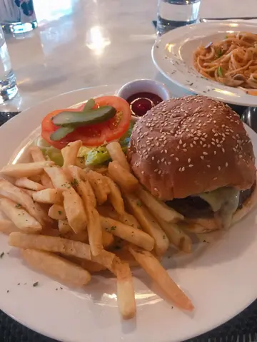見到呢間餐廳以八哥做主題,咁得意,於是就上去試下。入到去無乜人,我地諗住食個tea,我叫左個牛肉漢堡薯條,我朋友就叫左個帶子意粉。個牛肉漢堡好大份!我一個人係食唔哂既,牛肉都算整得唔錯,幾多汁