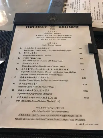 其實自己對八哥係一啲興趣都冇 純粹係有人生日然後朋友們想搞搞新意思搵啲綽頭嘢嚟試下😂😂不過入到去覺得佢哋嘅裝修 同埋設計都係好用心 無論係餐具 擺設同牆身設計都係有八哥嘅元素 不過就冇真嘅八個喺入邊喇🌚🌚 如果係八哥愛好者黎到到都應該幾開心🤔🔹✏️ 香煎帶子龍蝦汁意粉 ($168)龍蝦汁味道尚算濃郁 意粉係屬於扁身嗰隻 煮得幾好唔會太淋身黐埋一嚿嚿 而帶子味道都唔錯 而且大大粒食落幾彈牙新鮮啊🔹✏️ 炭燒美國西冷扒 ($258)西冷扒叫咗五成熟 個肉質整得幾軟腍🐮 而且識落唔會覺得韌 不過自己略嫌覺得個脂肪比例有啲太多 有好多位都係全條脂肪嚟😖但單憑肉嘅部份嚟講係煮得幾好 但如果調味再重啲會更加好食😛西冷扒嘅牛肉味都幾重 旁邊嘅薯菜有別於一般嘅炸薯條/薯角 而係一片片煎香嘅薯仔片 感覺都冇咁熱氣🔹✏️ 番茄水牛芝士沙律 ($88) (另加配三文魚+$30)好想食的菜但又唔想咁單調 所以就叫左呢個沙律再另外加配咗煙三文魚🐟個沙律最特別嘅係連埋原塊嘅水牛芝士🧀水牛芝士食落味道幾濃郁 帶些少鹹香 配搭著清淡嘅番茄沙律菜幾好 煙三文魚冇乜特別啦 味道正常🔹✏️ 榛子楓葉糖漿烤焗雞翼 ($88)呢個烤焗雞翼真心做得唔錯 個外皮超級香脆 而且食落感覺唔會油膩 不過我覺得個榛子楓糖漿就有啲麻麻地 佢係超級稀 好似一啲糖水咁...我個人覺得唔點仲更加好食😂🔹✏️黑松露薯條 ($68)黑松露薯條又係我成日叫嘅一個小食之一🤣薯條炸得都尚算香脆 不過好可惜嘅係最重點嘅係主角黑松露嘅味道一啲都唔突出☹️☹️☹️有啲失望啊