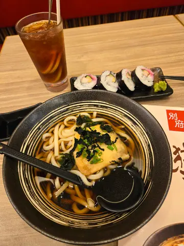 噚日(10-2-2024 Sat)大年初一晏晝,嚟青衣城睇戲前食個晏,由於唔想食咁多嘢住,咁就睇下有邊間啱,經過呢度見到別府,喺門口睇下menu,見到有啲$6X.00嘅烏冬,咁都算經濟於事就入嚟食。坐低後睇menu,睇見有個$64.00嘅鍋燒讚岐烏冬好吸引,但睇唔出有咩嘢食材,於是問問經理,經理答 雞肉丸同魷魚鬚。然後我見到有壽司,於是老公就想叫$84.00嘅五品壽司拼讚岐烏冬,但呢日冇刺身同壽司供應。咁又諗,最後佢要$65.00嘅雞扒讚岐烏冬,唔要飲品,留quota加個小食,而我嗰個烏冬係有嘢飲,咁要熱檸水啦。而小食呢?要$42.00嘅海苔年糕薯餅,但呢日冇,於要加$18.00嘅芝士年糕。冇耐,熱檸水同鍋燒讚岐烏冬到嚟,先食雞肉丸,內裡有粒粒雞軟骨增加口感,但可惜凍嘅,魷魚天婦羅就有紫菜增加味道;烏冬好彈牙,湯底係醬油湯底,好耐冇飲過醬油湯喇,原來係好普通嘅;腐皮就正常冇問題。3.5分之後雞扒讚岐烏冬,烏冬同湯底都一樣,雞扒煎得外脆,鹹淡適中又juicy,好味。5分芝士年糕有兩粒,趁暖食,煙韌又唔太鹹 好食。5分價錢:連加一係$161.70。2.8分題外話:別府,喺上世紀九十年代尾進註香港,有好多間分店,曾盛極一時,但o家原來剩返一間,好彩今次決定食呢間,否則唔知幾時至會食到。最後一次喺別府食嘅食評係2010年9月22日刊登嘅呢篇: https://www.openrice.com/zh/hongkong/review/%E4%B8%AD%E6%97%A5%E5%B0%8D%E6%8A%97%E6%85%B6%E4%B8%AD%E7%A7%8B-e2118501…查看更多