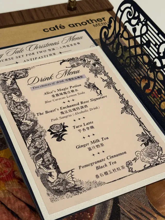 中環呢間cafe每位不須$300 就可以享用到豐盛嘅聖誕大餐,價錢幾吸引餐廳逢星期一仲有蛋包飯買一送一,記得要去試吓! 二人四道菜童話聖誕套餐$659 → $560 前菜 ANTIPASTI 慢煮鵝肝飄雪❄️·無花果沙律🥗 | FOIE GRAS SNOW FIGS (🌟7.5/10)現刨干邑鵝肝碎 · 無花果 · 香醋汁Grate Cognac Cured Foie Gras · Figs · Balsamic Reduction 前菜用咗天鵝湖做主題;無花果沙律代表湖上面嘅植物景觀,最後加上現刨嘅干邑鵝肝碎營造冬日飄雪嘅景色SOUP 餐湯紅菜頭椰子忌廉湯♥️ | BEETROOT SOUP WITH COCONUT CREAM (🌟9/10)紅色好應節,用咗紅菜頭配上椰奶忌廉打成嘅忌廉湯, 味道清甜,口感濃郁,而且係一啲怪嘅草青味都無,處理功夫做得好好MAIN 主菜 (Choose 2)藜麥核桃煙燻火雞胸肉🍗 | QUINOA WALNUT SMOKED TURKEY BREAST (🌟8.5/10)抱子甘藍 · 蜂蜜栗子 · 蔓越莓醬 Brussels Sprouts · Honey Chestnut · Cranberry Sauce以胡桃夾子做主題,底部由核桃同藜麥混合而成,健康爽脆;上面舖上兩大塊煙燻火雞胸肉,再以抱子甘藍沙律蜂蜜栗子伴碟,係高蛋白質又低脂嘅選擇👍🏻或 or灸燒北海道帶子·海鮮番茄意粉🍅| GRILLED HOKKAIDO SCALLOPS SEAFOOD TOMATO SPAGHETTI (🌟9/10)北海道帶子 · 象拔蚌 · 蟹肉 · 菠菜 · 車厘茄 Hokkaido Scallops · Geoduck · Crab Meat · Spinach · Cherry Tomato北海道帶子超大隻厚肉又鮮甜,再加入象拔蚌、蟹肉,番茄汁味道偏酸好開胃,意粉軟硬度適中或 or紐西蘭熟成西冷(8安士) | GRILLED NEW ZEALAND AGED SIRLOIN (8 OZ)烤日本南瓜 · 泡沫忌廉薯蓉 · 香醋汁Grilled Japanese Pumpkin · Potato EspumaDRINK 飲品 (Choose 2)愛麗絲魔法藥水💙 | ALICE’S MAGIC POTION藍柑檸檬梳打🍋Blue Curacao Lemon Soda係愛麗絲夢遊仙境入面嘅縮小魔法藥水啊, 不過偏甜咗啲或 or魔法玫瑰特調🌹 | The Beast’s Enchanted Rose Signature(有酒精/無酒精選擇)以美女與野獸👸🏻嘅玫瑰花為主題,超級浪漫🌹或 or冬日特飲 | WINTER DRINKS甜點 DESSERT 火焰聖誕樹頭蛋糕🪵 | FLAMING YULE LOG CAKE (🌟7/10)朱古力蛋糕卷 · 君度橙酒 · 雪糕 · 雜果 Chocolate Roll Cake · Cointreau · Ice Cream · Mixed Fresh Fruits樹頭蛋糕淋上火焰君度橙酒,帶有火焰效果🎇當然唔少得大大球香濃嘅雲尼拿雪糕,不過蛋糕就偏乾咗啲…查看更多