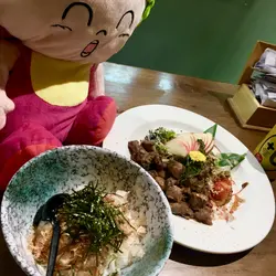 哦!!原來係咁😅😅😅日式牛柳粒飯口口口其中一個特色,就係老闆會好悉心咁做好賣相,有時係蘋果片,有時會有紫菜碎、木魚碎etc(左邊係飯黎嫁)~不過加左上去都係好夾,唔會覺得奇怪。牛柳粒就係好似圖中咁多,真係好抵食!煮得啱啱好,唔會過熟,讚!