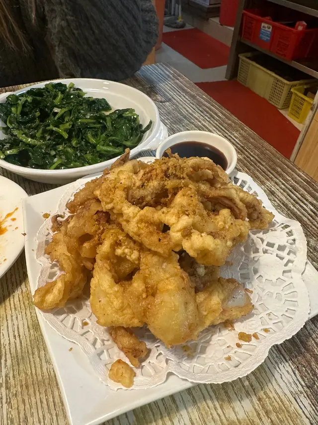 好耐無食大排檔喇!呢間有鑊氣而且上菜速度超快。薑蔥焗生蠔,生蠔夠大隻,略嫌配菜太少。蒜粒唔夠五粒!去大排檔食小炒王就知師傅嘅工架。呢個小菜王用上韭菜花、乾身炸香既土魷、鮮魷,銀魚仔、蝦乾(咸左小小)、菜甫(偏小)不錯!京都骨夠酸,而且朋友主動要求煮乾身,結果乾身得黎入面既肉仲係好juicy. 椒鹽賴尿蝦,唔好睇佢細細隻,有d 仲有膏添喎。而且肉質鮮甜,小小辣唔太咸!食到舐晒手指。叫左個脆豬手,呢個係最差既,皮算脆,中間有層油!肉就太乾身喇。可以唔試。之後加埋五支啤酒埋單!其實見到隔離枱都會去便利店買野飲。而且店家都好似無咩所謂。亦有人帶狗出黎食飯。晚市二手煙比較多。頂唔順既可以坐室肉。查看更多