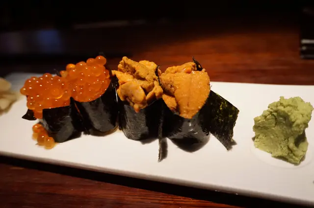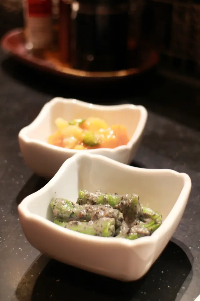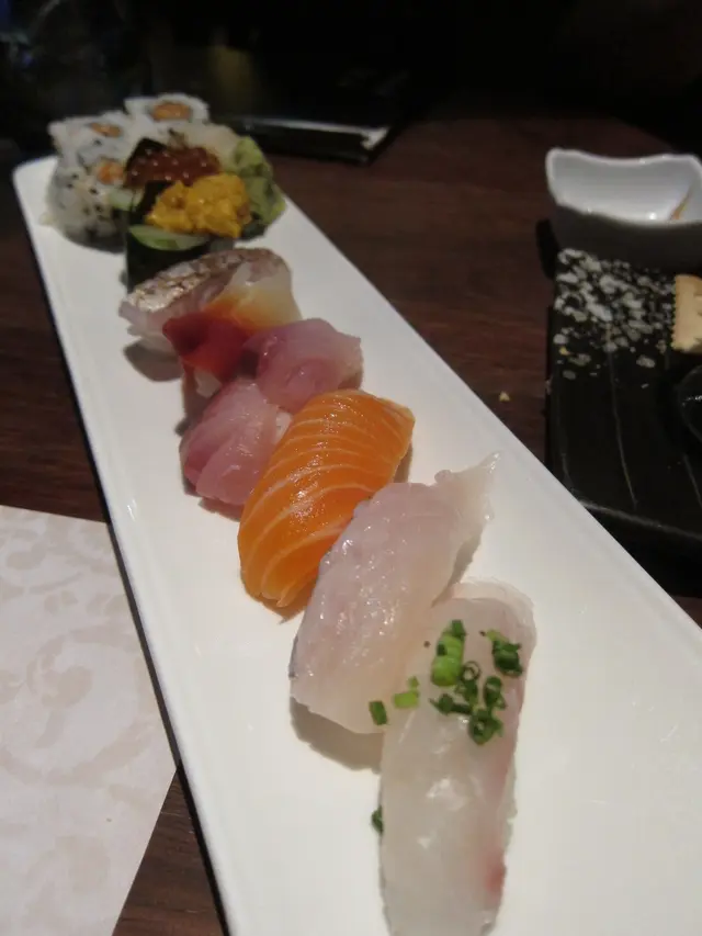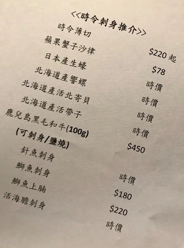 豆敏終於鼓起勇氣離開西區,走到油尖旺工作喇,要加油努力啊 ﹗開工大吉,恭喜返新工,第一日食餐好既慶祝下。美女收工到達已經十點半,餓死寶寶了﹗快快開始晚餐加宵夜。我都操左三粒鐘體力,消耗極多能量,要食多少少補充補充先得。可憐地想食既都無得供應,針魚無、鰤魚無、金目鯛無、活赤貝無、活鮑魚無,使到心情沉重。最初計劃到棉登徑焱丸水產食濱燒,嘆嘆烤海鮮、龍蝦刺生、蟹宴、等等。天意弄人,誰知兜來兜去,陰差陽錯跟美女碰不到面,白白浪費半個鐘,最後唯有走到最近的金巴利道。時間緊迫越來越夜喇,見面前有間味一番,多年前係山林道試過不錯呢!直入坐下不要再思前想後。明白的將近收檔,沒什麼食客,環境寧靜。燈光昏暗廷浪漫的,空間感還可以,不是太過迫夾。侍應姐姐嬸嬸親切有禮,殷勤友善地招待,舒服的感覺。香辣螺肉,居然外購貨用作頭盤小食,即時降格,太平庸喎,使我聯想起紅磡大眾飯堂的定食。漬牛蒡,醬油濃到有點過咸,牛蒡脆卜卜,高纖的健康食品。漬牛舌,腍劈劈,微羶咸咸的,一般。胡麻醬豆角,爽爽豆角有著豆香泛起胡麻香甜味,還可以。麻油海蜇,腍腍不爽的質地,麻油味突出,都是還可以吧。蟹糕,淨食怪怪的,黏黏蟹味半鮮半腥,應該配壽司飯會更好味,配青瓜就差少少。螢光魷魚漬,好懷念啊!六年前我第一次食螢光魷魚及鮟糠魚肝就是在山林道的味一番呢!一試難忘,好好味呀!現在幫襯任可一間日本店都必點的菜色,咸鮮出眾,爆汁黏滑,冰涼多汁脆卜卜,無得彈。八角魚刺生半條,明明記得叫做魴鮄魚,但四眼嬸嬸肯定地連日本名都講埋,一定係八角魚無錯喎。瘦削修長的八角魚竟然肉也不少,還要肥美充滿大量魚脂立立令,使得我唾液欲滴﹗即時行動,環繞著清甜的味道,魚脂甘甜,嫩滑帶實的肉質,食到停不下來。赤目刺生半條,魚皮被火槍炙過,金黃焦香吸引到極。白肉魚偏淡,魚脂不足,肥美欠奉,不過肉厚綿綿滲出微微肉汁,好舒服的質地。活角螺刺生,都不知道那個名才正確,海螺?榮螺?脆卜卜滑嘟嘟, 螺甜味不夠強,再凍一點會更好。牡丹蝦刺生,怪怪的不黏不膠,蝦甜味薄弱,跟屯門三聖邨海鮮檔既游水牡丹蝦味道及質感一模一樣,爽脆的蝦肉。壽司併盤 8 貫 3 反卷,如果侍應可以介紹一下就更好啦,我都唔知自己食緊什麼,要估估下。如果覺得好食想再 order 都無機會喇。那我就唯有段估。牡丹蝦壽司、劍魚腩壽司、吞拿魚壽司、三文魚壽司、島池魚壽司、赤目魚壽司、雕魚壽司、鰤魚壽司,款款各具特色,新鮮度不容置疑,肥美軟綿爽彈嫩滑包羅萬有,滿意有質素。辣味吞拿魚反卷,微辣帶甜開胃醒神,細細條容易食。雙色餃子雞翼,原來係鵝肝釀雞翼,羶到盡頭,濃烈霸道,在放棄邊沿,硬著頭皮格硬吞落肚。雞翼外皮極柏脆,最衰雞肉完全無味。食完濃羶味超勁的鵝肝,再食明太子變得沒有味道。鵝肝羶味久久不散,其實我只係想食普通的餃子釀雞翼,用上豬肉餡已經非常美味。北寄貝壽司、墨魚壽司、車蠔帶子壽司、金線鯛壽司、黑目鯛壽司,讚口不絕無投訴,高質美味,食左先講 ﹗三文魚壽司、油甘魚壽司、油甘魚腩壽司、池魚壽司、蟹柳反卷,一件接一件的掉入嘴仔細味,肥美多汁新鮮滑溜,滋味無窮損晒手指。玉子壽司,凍冰冰雪櫃拿出來的玉子非常不喜歡,甜甜的滲著水份。我要即煎香噴噴熱辣辣的,這才收貨。馬糞海膽手卷,紫菜香脆一咬索一聲裂開,馬糞少少鮮甜帶點微腥,彈彈冰涼濕濕,搭上壽司飯蠻不錯。燒雞皮,燒得香脆乾身不油膩,不過味道十分單調。煙肉蠔卷,蠔肉腥腥的,鮮甜味不足,雖然肥嘟嘟脹卜卜,併上濃郁咸香煙肉可挽回少許分數。鹽燒秋刀,平凡麻麻地,魚味十分淡,油淋淋但不肥美,肉質太瘦不嫩。脆皮去骨雞全翼,去骨後壓得扁扁再吉列,雞肉紙咁薄無味道,厚厚無味炸粉,挑出雞肉碎求其食完,炸粉外殼全部丟掉。蕎麥冷麵,溫度不夠冰凍,味道及口感差好遠呢。爽彈麥味清香,混在蔥花、薑蓉、芝麻、青芥辣的鰹魚醬油再啜上,味道無窮。冷稻庭烏冬,即叫即煮,即過冷河即上檯,非常好。薑蓉、蔥花、芝麻,再加 wasabi 跟鰹魚醬油撈得均勻,醬油可以再濃多少少。手打烏冬米香出眾,入口滑溜嚥韌,經過舌尖味蕾鑽到肚裡去,冰涼舒服暢快。浸浸混醬鰹魚汁大力吸啜,青蔥、薑蓉、芝麻夾在烏冬之中格外清香,還有青芥辣香氣的助攻,越食就越開胃起勁,好好味呢。…查看更多