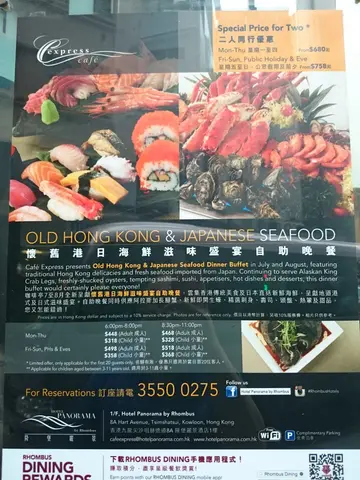 補足母親節諗住食豪啲,媽話想食生蠔,上網search見到呢間多款就book左點知一入門面已嚇親,兜左一圈,食左一輪完全唔明點解有200幾個like1. 整個地方連位size仲細過我樓下間大家樂,唯一景色就係望住人地check in2. 款色小得可憐,根本唔可以話有分區域,係一個區包曬所有前菜主菜日式西式中式甜品飲品3.食物唔新鮮,熟食得四五味但全部放到乾晒,冇人掂 生蠔瘦到媽話係"埃塞羅比亞蠔" 青口 蝦 長腳蟹 龍蝦乾身冇味 唔知食緊咩牛排切得半舊即整海鮮全部係bb蟶子丶象拔蚌 有d臭臭地生果明顯擺左成日 蜜瓜上仲痴住隻烏繩仔 紅豆沙擺到變紅豆糕唯一可取係油甘魚刺身 同moven pick雪糕!整體而言仲差過200幾蚊嘅自助餐4. 食左2個鍾基本上計埋我地只有四丶五枱客,而大部份都係酒店住客半價先黎食,外來客竟要比648一位,你話300蚊我就算啦,唔寫啦, 600簡直係不可接受!可以嘅話一粒星都唔想比!5. 講服務,得四枱客杯見晒底都唔識斟水6.從來冇食過一間buffet係咁,三位埋單18xx,係我有史食過最貴同時都係最差嘅buffet!