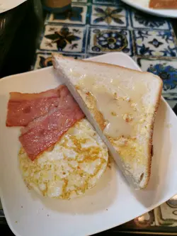 煙肉蛋多士嘅煙肉煎得好油,唔夾多士食會感覺成口油。