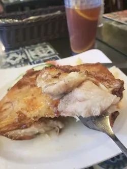 工作完路過,見到呢間小店裝修幾特別,就入去食個late lunch,見到餐牌個生炸雞脾幅相好吸引,每人叫咗一份,一個跟飯,一個跟沙律, 雖然佢啲芝士撈丁好似好正咁,可惜食唔落,下次肚餓d先再黎試下!個餐黎到嚇我一跳......好大隻呀!賣相又靚仔!仲幾好食喎!普通嘅價錢,幾好嘅質數!仲有...杯奶茶幾得!各位有機會路過,不防一試!好耐冇寫食評,支持一下香港小店吧😊